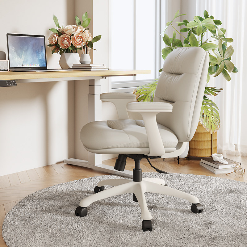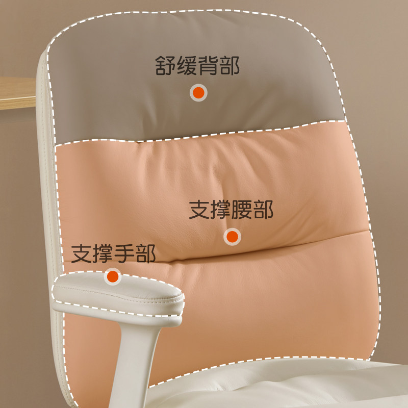 富凯真皮书桌椅奶油风学习椅电脑椅家用化妆椅舒适卧室书房办公凳
