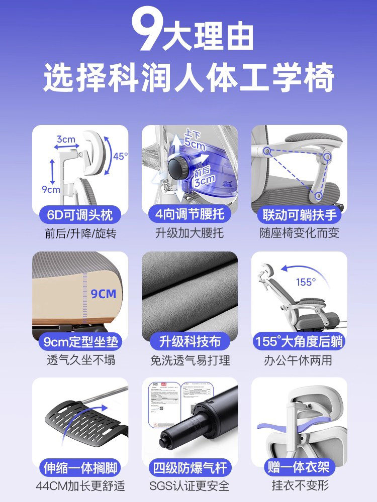 人体工学椅子护腰电脑椅家用舒适久坐办公椅午睡两用宿舍电竞座椅