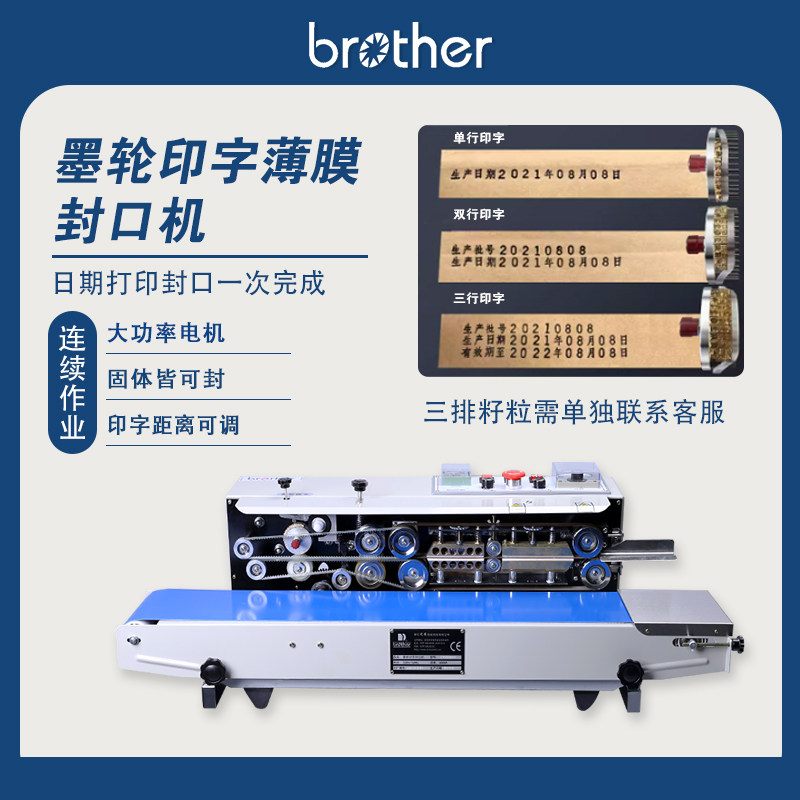 Brother/兄弟 FRD1000W豪华型墨轮油墨喷码印字生产日期商用全自动连续封口机茶叶食品铝箔塑料牛皮袋包装机